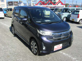 ekワゴンのターボです☆走行距離も魅力的ですが、ナビとバックカメラも嬉しい装備ですね◎紺に近い上品な紫です☆アルミホイールで足元の印象もシュッとさせております♪ぜひ店頭まで